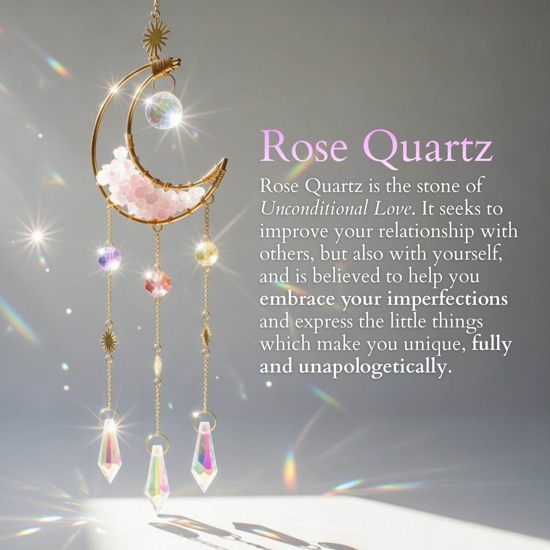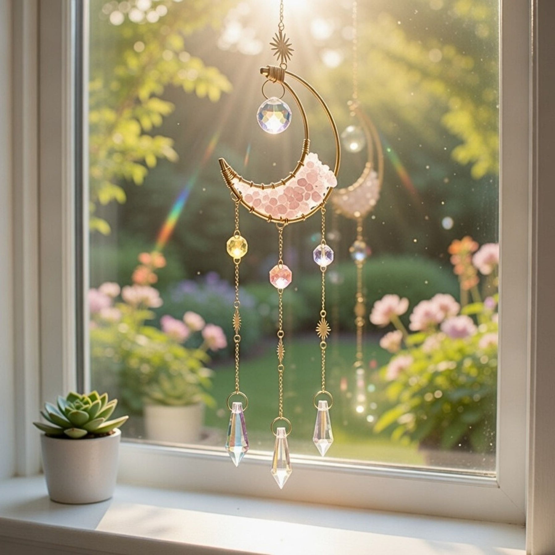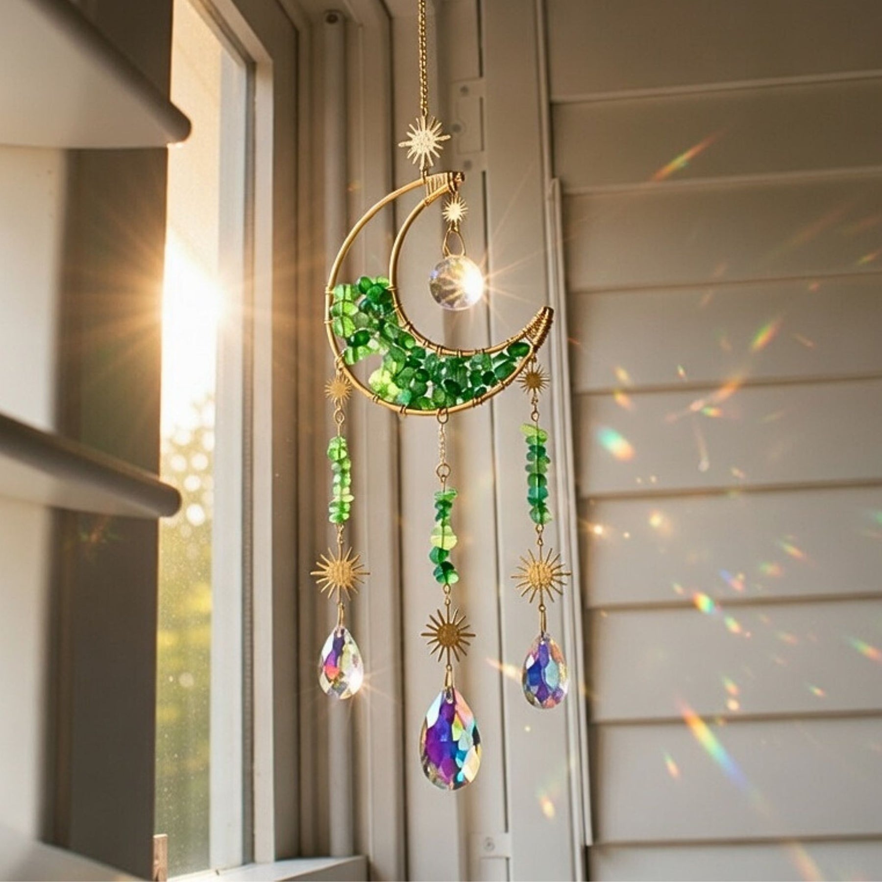 Hang your Lunar Suncatcher by any window to turn your room into a sparkling oasis of sunlit sparkles. Enhance your spiritual being as you charge your crystals in the sunlight and moonlight.