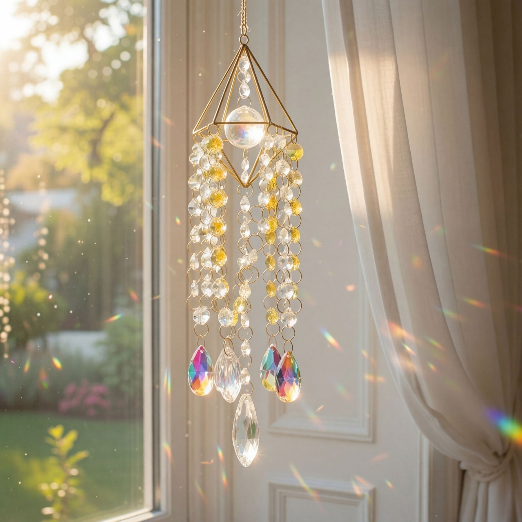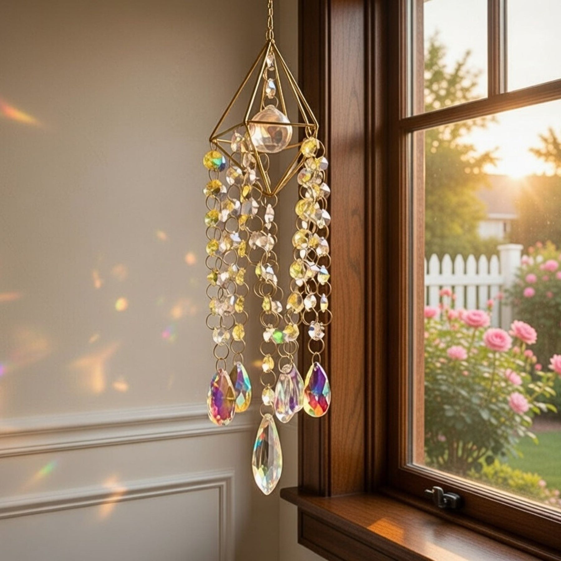 Sunstruck's Oasis Suncatcher is the embodiment of spiritual elegance. Hang this suncatcher by any window to fill your home with a mystical ambience from wall to ceiling, and indulge in absolute tranquility. You'll never want to leave your room again.